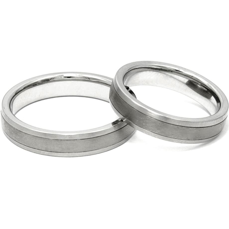 titan uprostřed prstene v matu v kombinaci s chirurgickou ocelí po okrajích prstene v lesku, šířka 4,5 mm, oba prsteny bez kamene, vnitřní zaoblení profilu prstenu, 68/10020-045 68/10020-045